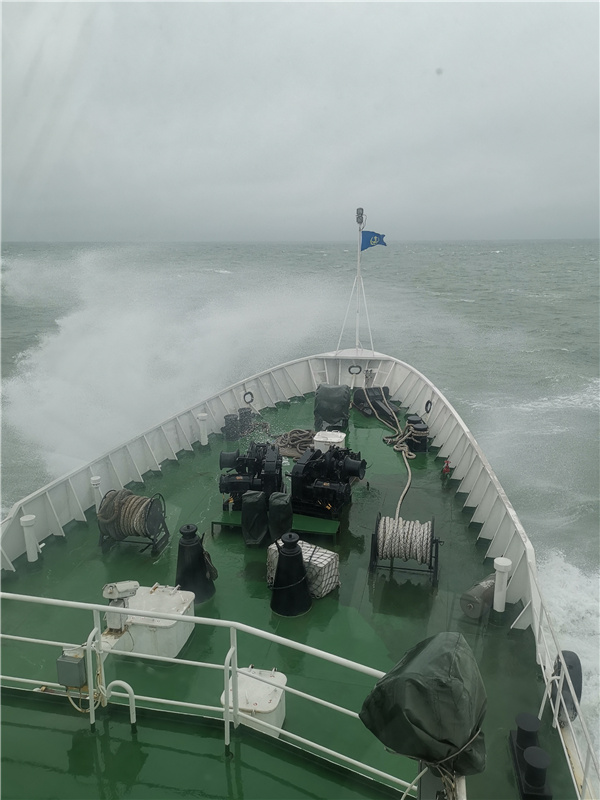 海巡船艇顶着狂风巨浪赶往船舶事故海域开展救助行动。福建海事局 供图