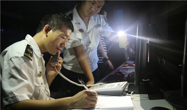 防抗超强台风“莫兰蒂”期间,海事部门在断电情况下连续接警处理十余起船舶搁浅走锚险情。福建海事局 供图