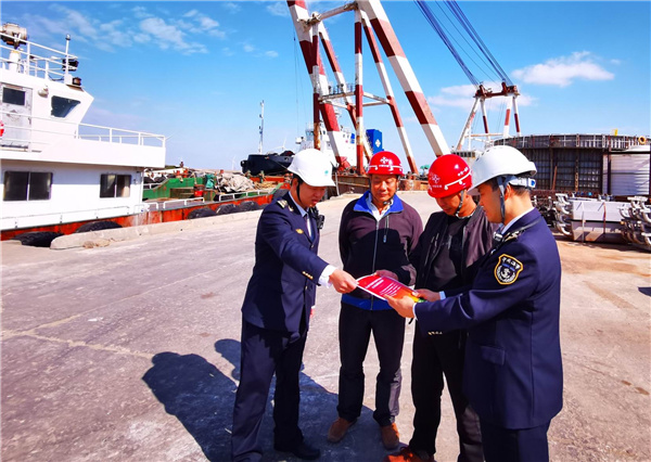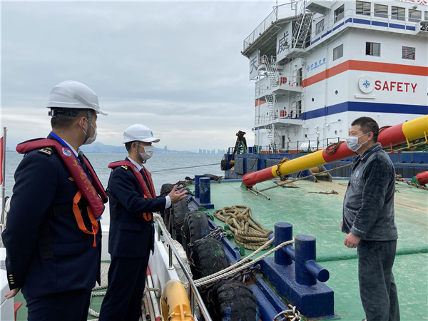 海事执法人员深入辖区码头开展安全隐患排查治理。福建海事局 供图 福建海事局副局长王华明表示,“在今后的工作中,我们将牢牢把握‘保障水上交通安全’这一根本职责定位,坚持抓安全固根本,发挥海事专业优势,进一步优化海事现场综合执法机制运行,加强重点船舶、重点区域、重点时段的安全监管,滚动式开展风险分级管控和隐患排查治理,努力提高涉海新业态监管能力,推动水上交通安全系统治理、依法治理、综合治理、源头治理,构建共建共治共享治理格局。” |