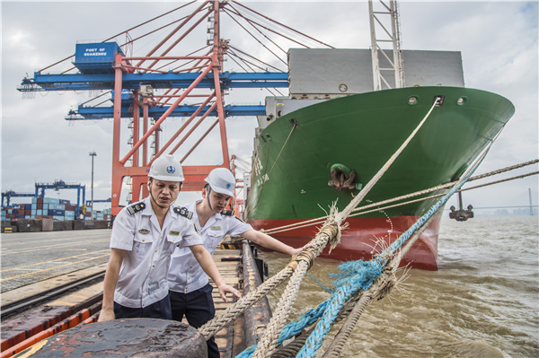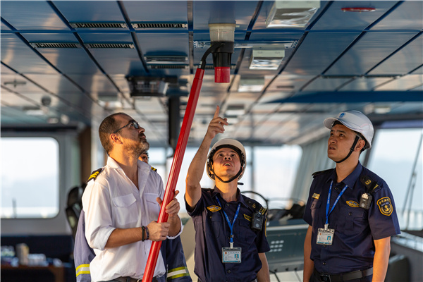 海事执法人员在外籍货轮上检查船舶火灾报警装置。福建海事局 供图 在准确把握辖区水上交通安全规律特点的基础上,该局深化“平安交通”建设,深入开展“打非治违”、采运砂船、水上危险品运输等专项整治行动。该局建立并完善了以指挥中心为指挥协调枢纽,以现场动态综合执法为依托,以信息化为纽带的水上安全动态监管联动执法新机制,同时严把船舶登记、船舶检验、公司管理等源头管理关,做到动静态结合,从水陆、船岸两个工作面形成安全监管的合力。 7年来,在辖区港口吞吐量不断增长的同时,险情数量总体下降,海上险情数量在全国11个沿海省(市)中位列第7,年均救助遇险人员943人、救助遇险船舶95艘。人命救助和船舶救助成功率远高于全国平均水平,确保了辖区水域的安定与稳定。 主动融入,强作为服务经济发展 2020年12月,交通运输部海事局批复同意“多证合一”试点改革范围由厦门港内航行船舶,扩大至福建籍且航行于福建水域的船舶。这是全国首次实现省一级范围内沿海航行船舶“多证合一”,受益船舶将增加至900余艘。