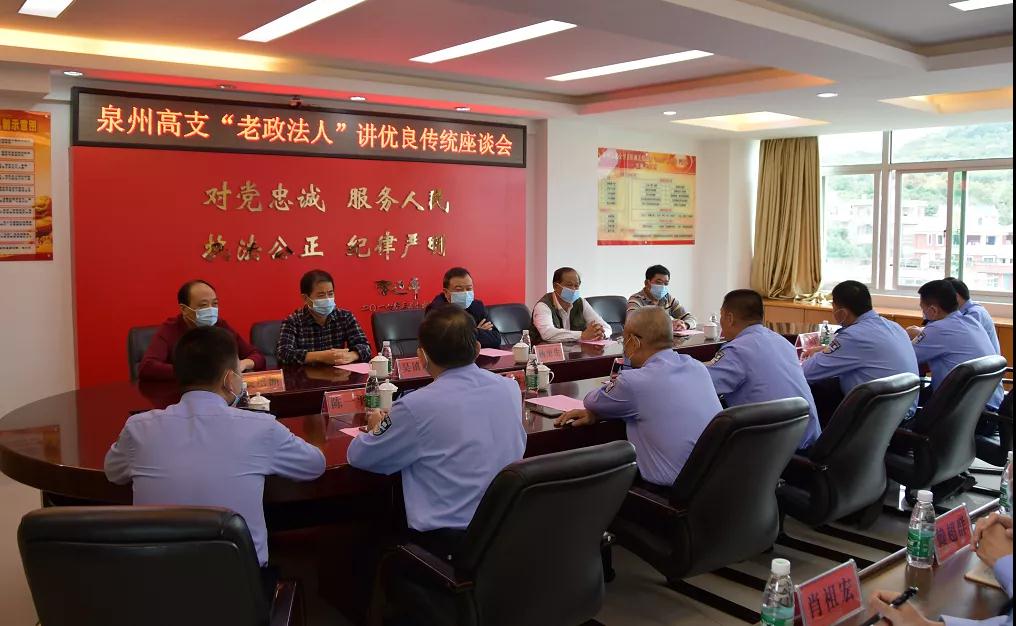 11月8日上午,泉州高速交警支队邀请支队原支队长杨更生等5位老政法人召开“老政法人”讲优良传统座谈会。会上,5位老政法人分别结合自己从警生涯的工作经历,分享他们听党指挥、爱岗敬业、服务人民的感人事迹,重温他们信仰坚定、胸怀大局、崇德尚法、无私奉献的优良传统。