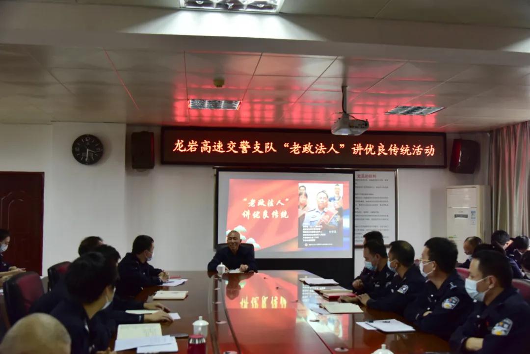 11月4日,龙岩高速交警支队举办“老政法人”讲优良传统活动,邀请退休民警林学富同志,为支队机关全体民警、文职讲述优良传统。林学富同志回顾自己的从警经历,讲述了践行对党忠诚、对公安事业忠诚的感人故事,充分展示了老一辈公安民警浓厚的家国情怀和深深的公安情结,让人深受感染和教育。林学富用自己的亲身经历勉励与会公安民警、文职要忠于党,忠于人民,爱岗敬业,恪尽职守,忠实履行党和人民赋予的职责。 |