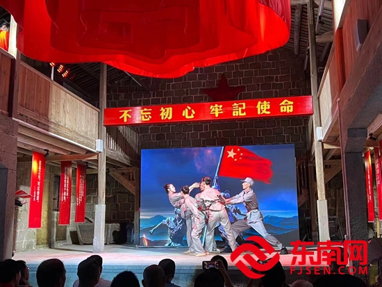 舞台剧《百年旗帜》现场剧照(江田镇 供图) 据介绍,为迎接党的二十大召开,南阳村修缮了谈心亭、南阳村礼堂、九坑山闽中游击队司令部、陈亨源广场等。江田镇挖掘宝贵的历史人文资源,将省委在南阳的历史史实结合长乐抗日革命历史,改编成历史舞台剧《百年旗帜》搬上舞台,再现了陈亨源、陈俊盛等一个个鲜活的历史人物,在民族存亡的历史关头,进行惊心动魄、气贯长虹革命斗争的故事。 回望百年党史,重温峥嵘岁月。随着音乐声响起,人们的思绪回到了100多年前,嘉兴南湖的一艘红船,在烟雨朦胧中,随着小船的摇曳,梦想从这里起航——由江田镇党委编排的舞台剧《百年旗帜》正拉开了帷幕。该音乐剧共为分《南湖的红船》、《敢教日月换新天》、《歌唱新时代 歌声献祖国》、《开创美好未来》等八个部分,讴歌了党在各个历史时期团结和带领全国各族人民进行的艰苦卓绝的斗争,建立了彪炳史册的历史功勋。 此次活动给党员们进行了一次精神洗礼,进一步激发了党员的责任感和使命感,大家纷纷表示,在今后的工作中要学习革命先烈的优良传统,坚定信念,不忘初心,争做新时期的合格党员。 |
