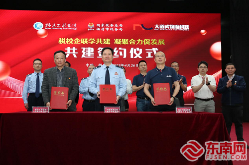 共建签约仪式现场 福清市税务局供图 经过多轮探讨,4月26日,三方在福州市开展“税校企联学共建 凝聚合力促发展”活动。活动伊始,福建工程学院副校长何仕致辞欢迎参与活动的税企人员,交通运输学院党委书记郑磊作“学思践悟二十大 联学共建谱新篇”主题分享,随后,三方签订共建协议,今后,三方将发挥税务部门政策引导优势、高校人才储备与科研成果优势、企业创新发展与实践资源优势,互派人员强化交流、互设基地加强合作,以税收优惠推动科研成果投产转化。 福建工程学院交通运输学院与福建大道成物流科技有限公司共建研究生联合培养基地,共同开展物流与数字化领域相关科研课题攻关及合作研究,探讨交通物流及数字化等相关专业硕士人才培养方案,由企业接收、指导毕业生实习,将其培养为合格熟练的技术、管理人员并择优录用。当天,大道成物流科技有限公司董事长林顺钦为物流管理、交通运输等专业学生们作《新模式、新技术助力物流供应链创新发展》讲座。 活动现场,福建省首个“高校税收普法教育基地”揭牌成立,该基地由福清市税务局与福建工程学院交通运输学院共建。当天,税收业务骨干为教职工们带来个人所得税专项附加扣除政策讲解。今后,福清市税务局还将以该基地为平台,聚焦高校师生关心的创业就业税收优惠、科研成果转化涉税政策等进行常态化的宣传辅导,培养高校税法宣传志愿者,实现税收宣传与普法教育同频共振。 福清市税务局党委委员、副局长陈天波表示,将用好用实“税校企”合作平台,打造可应用、有作用的长期合作模式,推进政、产、学、研、用的深度融合,更好地服务地方经济高质量发展,真正贯彻落实“深学争优、敢为争先、实干争效”行动要求。 |