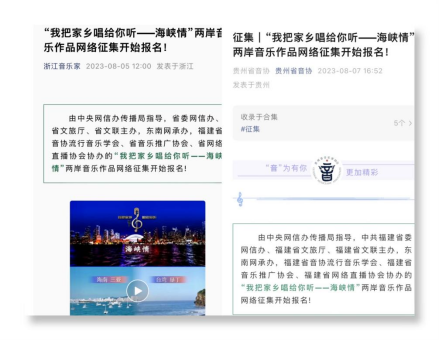 “海峡情”两岸音乐作品征集投稿火爆! 浙江、贵州音协关注