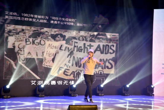 嘻哈歌手茶童生动演绎一段“防艾”RAP《咨询处》,赢得观众热烈掌声。