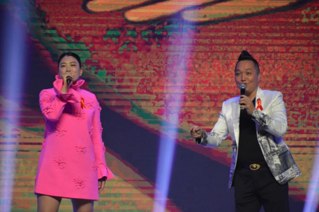 福州本土主持人土豆,与他的妻子豆嫂带来了歌曲《与艾挥挥手》,浅显易懂的歌词,提高大家艾滋病的自我防范意识。
