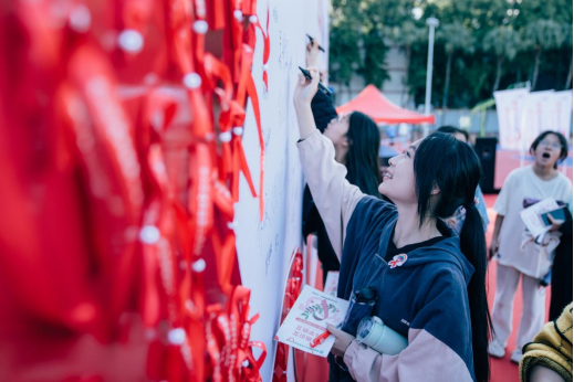 东南歌王许振旗,与嘉宾代表一起演唱“防艾”歌曲《防艾宣传大家唱》,把现场气氛推向高潮。 在体育馆外篮球场上,工作人员通过悬挂横幅、宣传展板、发放宣传资料、开展科普宣传、义诊咨询等活动,结合开展知识竞答等方式互动。同时线上采用了有奖知识竞答形式,广泛发动全体师生、社会人员共同参与有奖知识竞答,调动广大群众参与活动的积极性,提高宣传效果。