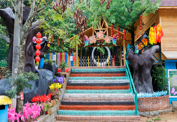 彩蝶谷创建于2016年,是福建省唯一一个蝴蝶昆虫养殖基地,年产蝴蝶昆虫100万只,是集科研、科普、研学为一体的昆虫园。谷内建有昆虫科普馆(内有科普展板60平方,昆虫标本500多种,影像介绍、幼虫展区)、活体馆(内有昆虫交配区、觅食区、产卵区、羽化区)、石斛园、萌宠园、小鸟园,其中蝴蝶馆是福建最大的自动温控球形活体馆,是国内蝴蝶品种、数量最多的蝴蝶活体馆。