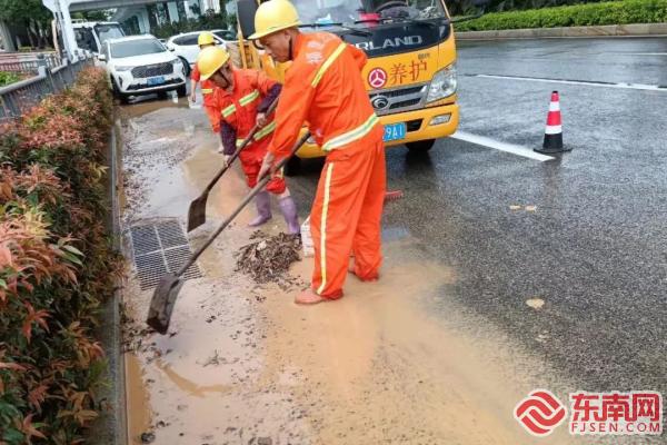 养护工人用铲子将泥沙铲除干净(厦门公路中心供图) 东南网6月17日讯(记者 刘玮 通讯员 陈佳妮)自入汛以来,厦门地区频繁遭遇降雨天气,午后雷阵雨更是成为常态,局地还伴有短时强降水等强对流天气,给市民出行带来不便。厦门市交通局公路中心迅速行动,按照“提前预防、充分准备、周密部署、快速反应”的原则,全面提升应对局部强降雨的应急处置能力。 公路部门以“时时放心不下”的责任感,确保汛期道路的安全与畅通。6月11日,同安区气象局将暴雨黄色预警信号升级为暴雨橙色预警信号。同安区突发短时强降雨,导致同集路蔡店路段和洪塘头路段出现积水。厦门公路部门迅速调派养护工人、自卸车、路锥等物资赶到现场,进行安全布控和交通疏导。养护工人深入积水区打开雨水井盖加速排水,并安排人员值守直至积水消退。 6月12日,厦门市气象台再次发布暴雨橙色预警信号。同安区“热雷雨”突袭,滨海西大道浦头高铁下穿通道双向路段出现积水。公路部门立即封闭道路,使用泵房抽排积水,并打开沿线雨水箅加速排水。养护工人在积水消退后清扫雨水箅上的泥沙,确保公路恢复正常通行。 直属公路部门积极落实值班巡查机制,加强监测预警,及时排查处理道路安全隐患,并对辖区雨排水系统进行全面排查,清理雨水箅、边沟、涵洞等排水设施,确保排水畅通。