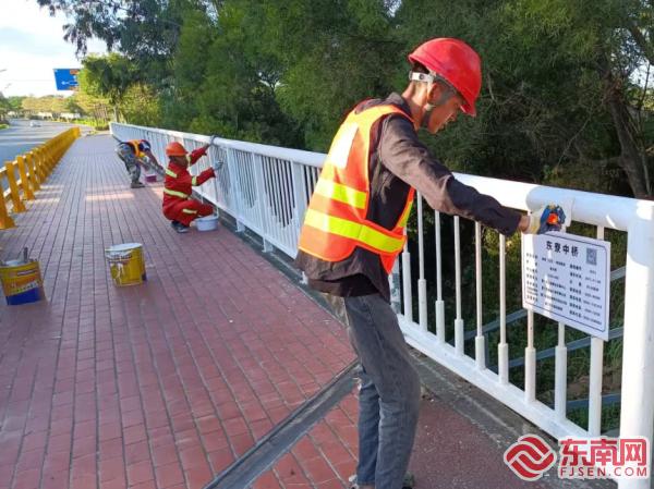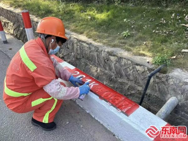 养护工人对道路设施进行刷新维护(厦门公路中心供图)
