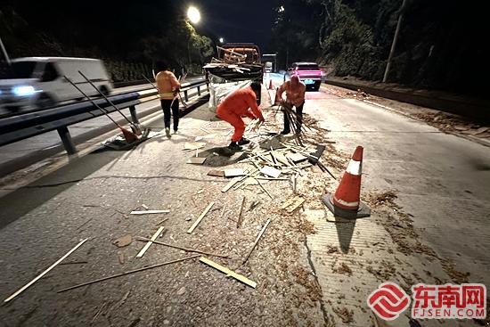 木块撒落存隐患 漳州公路人及时出动保畅通