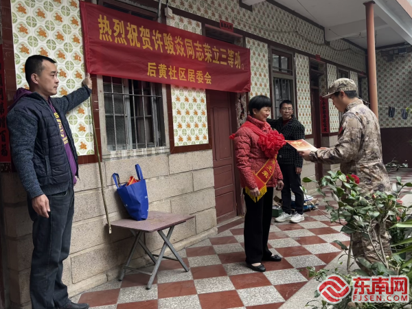 宣读立功喜报 东南网1月24日讯(通讯员 刘晓颃 文/图)岁末年初,喜报频频。近日,莆田市荔城区西天尾镇退役军人服务站会同相关部门组织开展送喜报活动,为辖区内立功的现役军人家庭上门送去立功喜报及慰问金,让军属共享喜悦荣光,营造尊崇军人军属的浓厚社会氛围。 锣声铿锵,鼓音震天。随着车鼓队的锣鼓声,荔城区退役军人事务局、西天尾镇武装部、西天尾镇退役军人服务站联合村(社区)上门为荣立三等功的现役军人顾佳亮、许骏焱和林剑斌送去立功喜报。