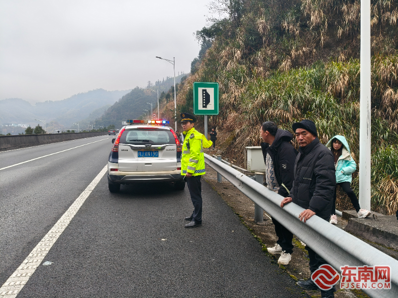 伸手帮忙抱儿童。宁德高速公路行政执法支队供图 宁德高速执法支队福安北中队接到报警后迅速响应,第一时间到达现场,同时与高速交警、高速公司等部门协同救援。执法人员到场后,快速在隧道入口、故障车后、滞留人员处设警示标志,疏导过往车辆。