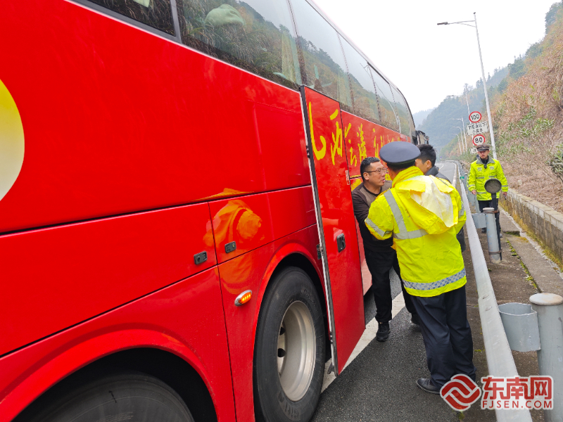与驾驶员交流注意事项。宁德高速公路行政执法支队供图 在多部门近两小时的努力下,38名乘客搭乘新的客车安全离开高速公路,故障车辆也安全拖离高速。此次事件中,各部门联动高效,成功化解危机。在此宁德高速执法也提醒广大司乘朋友出行前务必检查车况,高速遇险,请牢记十二字诀:“车靠边、快警示、人撤离、即报警”。 |