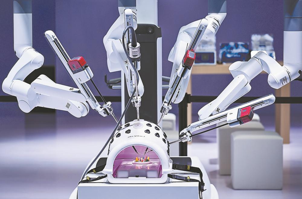 图为14日在2025中国医学装备展览会拍摄的手术机器人演示现场。 新华社