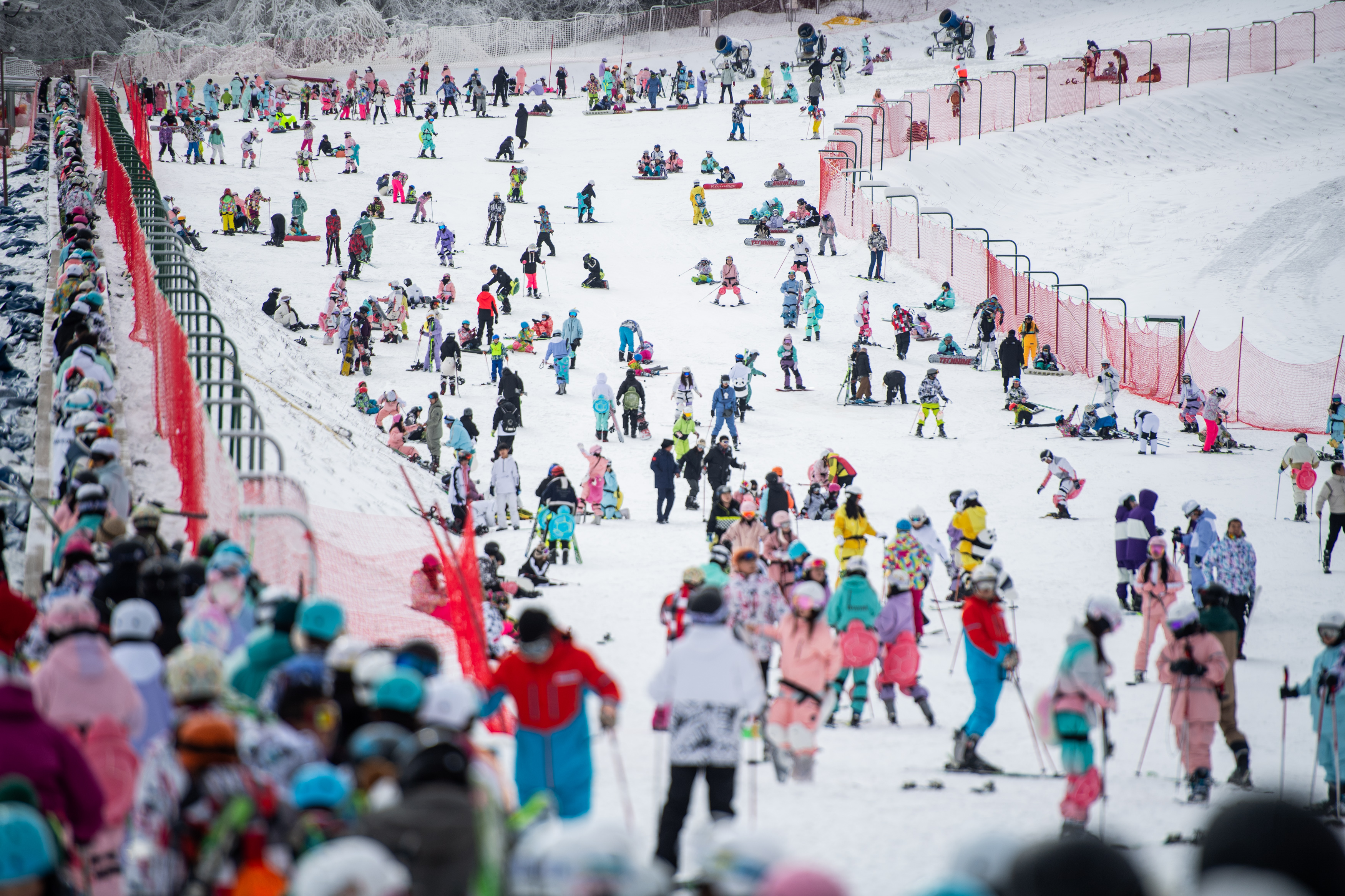 滑雪爱好者在湖北神农架国际滑雪场滑雪。新华社记者 伍志尊 摄 对于既向往晶莹剔透的冰雪世界,又畏寒的南方游客而言,气温在零度以上的湖北神农架雪场则是另一种选择。有着“华中屋脊”之称的神农架,冬天降雪充沛、雪质蓬松。 郑渝高铁开通后,神农架结束了不通高铁的历史。乘坐高铁直达神农架的广东游客张媛媛说:“来神农架滑雪很方便,抵达神农架后,还有‘滑雪直通车’直达雪场,可以尽情体验滑雪的刺激。” 神农架中和旅游有限公司负责人龚金戈介绍,相较于东北的粉雪场地,神农架雪场因交通和时间成本较低,在周末与小长假中显现优势,特别受到华南地区游客的欢迎。