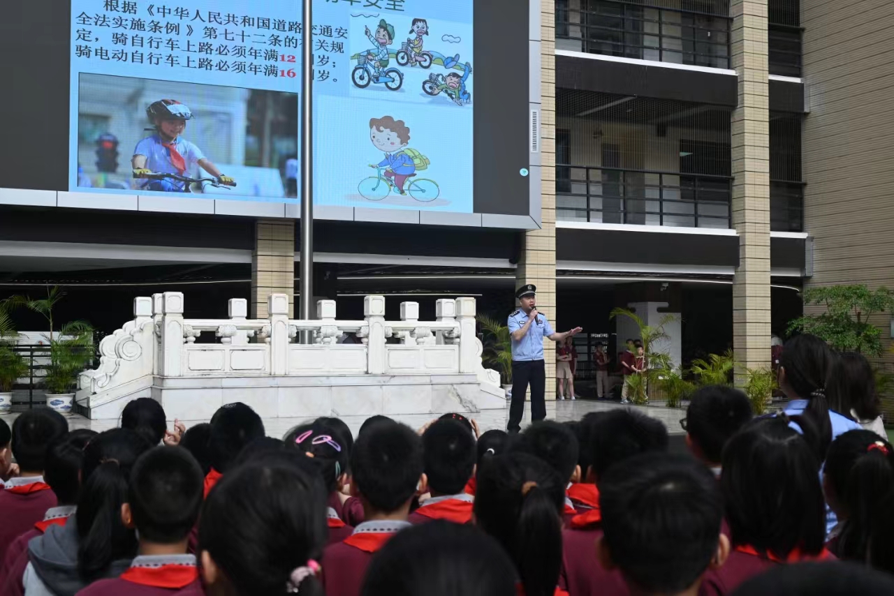 “小朋友们,这样戴头盔对不对?”“不对!”期间,被辖区百姓亲切地称为“东东哥”的东街所民警还在当日上午学校举行升旗仪式活动后,为全校师生讲授交通安全教育课。不能闯红灯、正确佩戴安全头盔……“东东哥”结合真实发生在小学生身上的交通事故案例,通过视频展播、交通安全知识宣讲等形式,让广大学生认识到不遵守交通规则的危害性,提高交通安全意识。