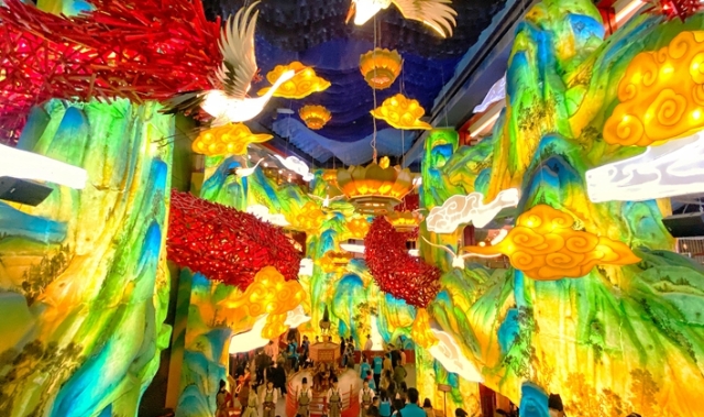 “街头杂技”表演(东南网记者 颜财斌摄) 项目以“唐食嗨吃、换装推本、唐风雅集、微缩长安、情景演艺、文化盛宴”等六大沉浸场景为核心,让市民游客能够在长安十二时辰充分享受到“观一场唐风唐艺、听一段唐音唐乐、演一出唐人唐剧、品一口唐食唐味、玩一回唐俗唐趣、购一次唐物唐礼”的一秒入唐体验。 创新融合 影视IP赋能文旅商融合新典范 从“观影”到“入戏”,该项目结合原剧中的剧情、人物、道具、故事特色,邀请了《长安十二时辰》的原班美术置景团队作为顾问,将剧中靖安司沙盘、日晷、望楼等道具场景完全复原,不仅构建唐朝的场景空间,更将唐朝的鲜活人物、风土文化、美食习俗完美复原,让游客体验长安、感受长安、爱上长安,将影视IP赋能城市文旅商融合新场景。 其中,南侧中庭的“花舞大唐”最为出彩,场景布置还原《长安十二时辰》中许鹤子上元节花车斗彩巡游的场景,将原有两层空中连廊巧妙利用,充分发挥三层中空的立体空间,营造一处公共演艺舞台,既符合现代商业公共空间设定,又营造出影视剧中绚烂夺目的舞台效果。
