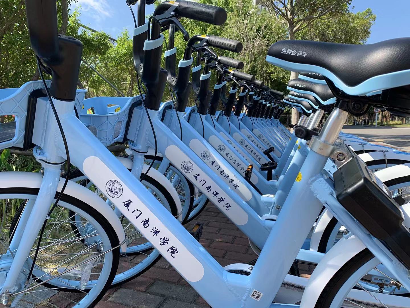 同时,这些颜值颇高的共享单车也是福建省内首批高校定制款,仅供校园骑行。 首批共200辆专享车为哈啰最新三代校园车,更轻、更舒适、更好骑,车身颜色为最近很流行的网红色“雾霾蓝”, 每辆校园定制车都印有“厦门南洋学院”的字样,风格更加年轻,更加贴近大学生青春、阳光的形象。