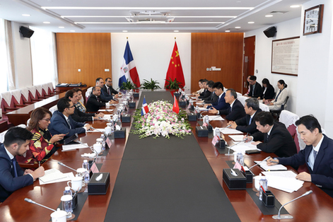 黄明会见多米尼加总统府部部长蒙塔尔沃、经济部部长胡安一行