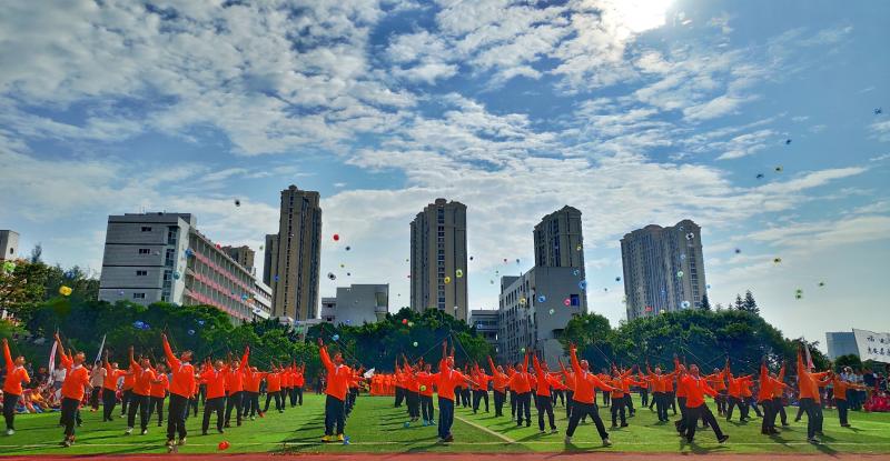 泉州市惠安县嘉惠中学(2019年惠安县中小学生田径运动会在惠安县嘉惠中学拉开帷幕。开幕式会上,聚龙外国语学子带来了精彩的抖空竹表演。)