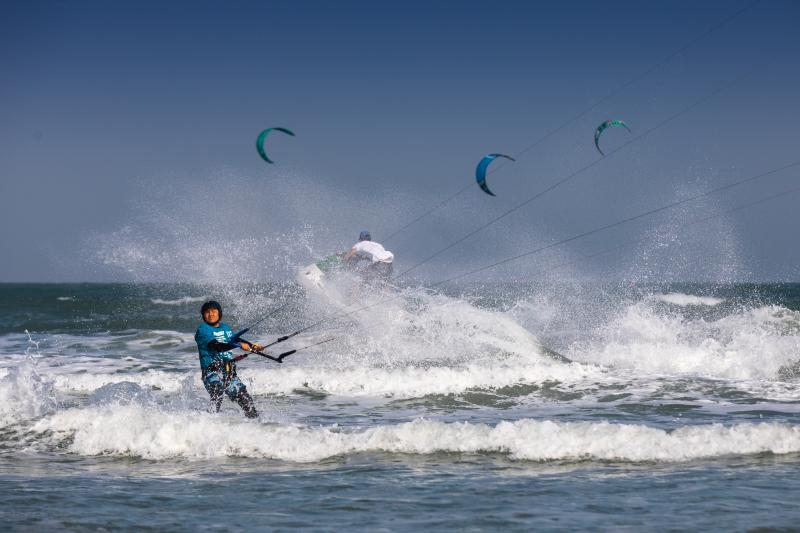 东山良好的海湾沙滩吸引众多风筝板爱好者前来竞逐。2019年11月3日摄于东山金銮湾
