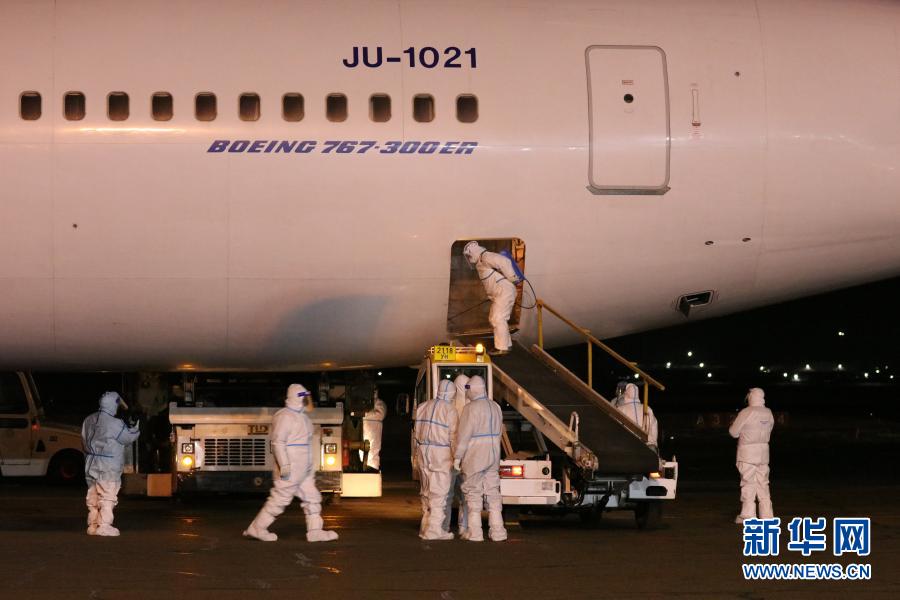 这是2月23日凌晨在蒙古国首都乌兰巴托成吉思汗国际机场拍摄的载有中国援助的新冠疫苗的飞机。新华社记者 阿斯钢 摄