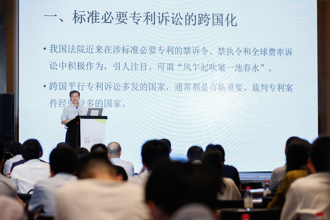 孔祥俊院长的演讲主题为“中国司法在国际SEP/FRAND争议案件中的积极作用”。孔院长从标准必要专利诉讼的跨国化、我国标准必要专利诉讼的司法演变两个方面系统介绍了中国司法在标准必要专利诉讼案件中应当发挥积极作用的根本原因和历史沿革,并且就如何在跨国平行诉讼中提升国家司法体系作用方面分享了他的深入思考。
