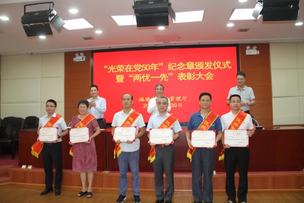 6月30日下午,省应急管理厅举行“光荣在党50年”纪念章颁发仪式暨“两优一先”表彰大会。大会组织党员重温入党誓词,为老党员颁发“光荣在党50年”纪念章,表彰我厅优秀共产党员、优秀党务工作者和先进基层党组织。厅党委书记郑李亭出席会议并讲话。 下午3时30分,大会在庄严的国歌声中拉开帷幕。郑李亭带领全体党员面向党旗,重温了入党誓词;随后与夏安和、叶世永两名“光荣在党50年”老党员一一握手祝贺,颁发了“光荣在党50年”纪念章。大会宣读了厅“两优一先”表彰决定,“两优一先”个人和集体代表依次上台接受表彰。 会上,郑李亭代表厅党委,向夏安和、叶世永两名“光荣在党50年”老党员致以崇高的敬意!向受表彰的优秀共产党员、优秀党务工作者和先进基层党组织表示热烈的祝贺!向长期奋战在我省应急管理各条战线的全体共产党员表示节日的问候! 郑李亭指出,在隆重庆祝中国共产党成立100周年之际,重温党的光辉历程,缅怀党的丰功伟绩,对我厅各级党组织和广大党员干部如何从党的历史中汲取前进的智慧和力量,增强历史自觉,守初心、担使命,推进我省应急管理事业高质量发展,具有十分重大的意义。全厅各级党组织和广大党员干部要认真学习贯彻习近平新时代中国特色社会主义思想和习近平总书记来闽考察重要讲话精神,扎实开展党史学习教育,在缅怀历史中牢记责任,在展望未来中激发动力,进一步解放思想、改革创新、真抓实干,扎实做好应急管理工作,主动服务我省经济社会发展大局。 郑李亭强调,全厅各级党组织和广大党员干部要以夏安和、叶世永两名“光荣在党50年”老党员和受表彰的先进典型为榜样,以党员身份为荣,坚定理想信念追求;以党性修养为根,争当党员先锋模范;以务实为民为本,坚决主动担当作为,牢记使命尽职责、坚定信心谋发展,撸起袖子加油干、砥砺奋进求跨越,不断推动我省应急管理事业改革发展上新台阶,以优异成绩庆祝中国共产党成立100周年。 (厅机关党委 宣)