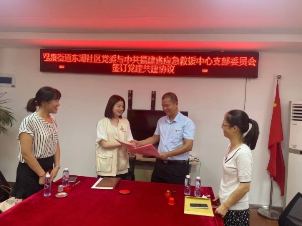 近日,福建省应急救援中心党支部与温泉街道东湖社区签署共建协议,双方将按照结对共建协议内容,就组织共建、党日共学、服务联办、资源共享等四个方面展开具体活动,通过双方党建共建共创,进一步加强党组织交流,加强基层党组织规范化建设和党建工作创新,互相借鉴经验、促进优势互补、实现共同发展。