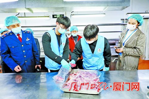 “月月十五查餐厅”为您把关年夜饭 昨实地检查两家人气供餐企业,并通过网络平台进行直播 厦门日报讯(文/记者 陈泥 通讯员 刘启国 图/记者 王协云)腊八过后,年味渐浓。说起过年,最令人期待的首先就是年夜饭,亲朋好友欢聚一堂,在美食的陪伴下喜迎新年、共度佳节。但年夜饭的食材安不安全、餐厅酒店的卫生达不达标,也格外受到市民关注。 市食安办携手本报联合主办的“月月十五查餐厅”行动,本期通过征求市民、网友的留言和意见,选择了集美区两家人气较高的年夜饭供餐企业进行突击检查。昨日上午,记者与市场监管执法人员、“民评小分队”市民代表一起,对两家餐饮企业的后厨卫生状况、原辅料进货查验、食品规范存放、加工过程控制、从业人员管理等环节进行了认真细致的实地检查。本次行动也在多个网络平台进行了直播,在“聚光灯”下为市民把好餐桌食品安全关。 味友(杏林湾店) 食材溯源较规范 餐具洁净度待提高