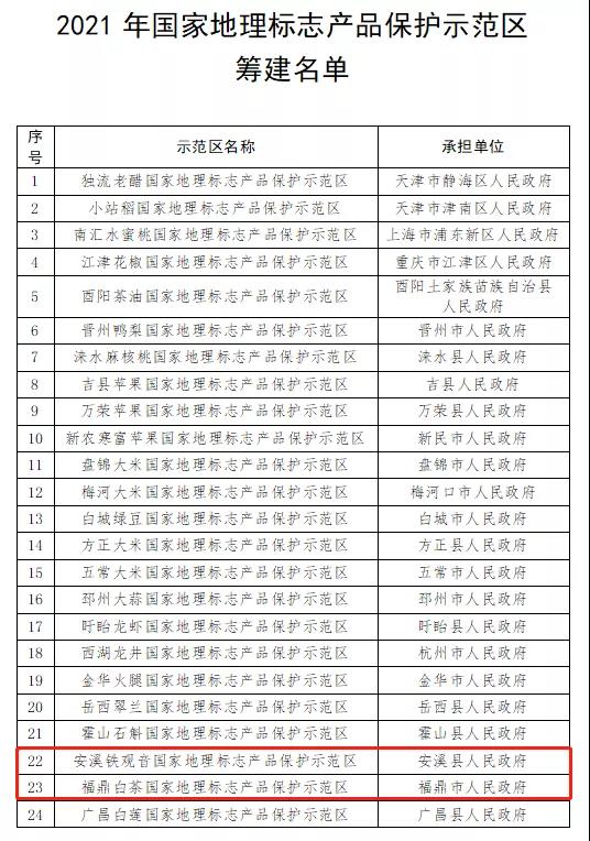 2021年国家地理标志产品保护示范区筹建名单公布!福建两个地方上榜!