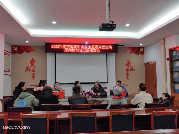 1月24日下午,国家矿山安监局福建局组织安全技术中心党支部党员志愿者前往共建社区铺前社区开展“佳节尚文明志愿关爱行”春节走访慰问活动,用实际行动传递党和政府的温暖。慰问中,党员志愿者与困难群众亲切聊天,了解他们的家庭生活状况和存在的具体困难,并叮嘱他们要照顾好自己的生活,让他们在这个洋溢着团圆、喜庆、欢乐气息的日子里感受到来自党和政府的关怀与温暖。党员志愿者还上门探望腿脚不便的困难老人,认真倾听他们的困难和诉求,鼓励他们树立信心,以积极向上的阳光心态面对生活,并送上了大米、油等慰问品。此次共慰问了8户困难群众,拉近了与居民之间的距离,增强了基层党组织的凝聚力,形成扶贫帮困、情暖辖区居民的良好氛围。