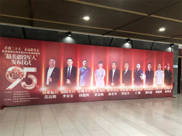 7月31日,由省委宣传部、省退役军人事务厅、省军区政治工作局联合主办的“喜迎二十大,永远跟党走”庆祝建军95周年暨2022年度福建省“最美退役军人”发布仪式在省广播影视集团演播厅举行。副省长李建成、省军区司令员王宏宇出席活动并为“最美退役军人”颁奖。
