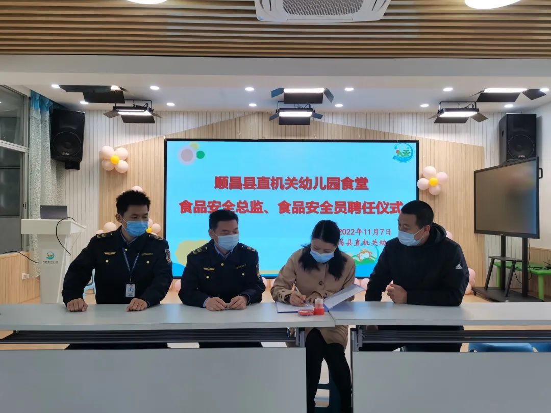 自国家市场监管总局部署落实食品安全“两个责任”工作以来,顺昌县食安办、市场监管局按照省、市市场监管局统一部署,早安排、早行动,全力推动学校食品安全总监和安全员配备工作落细落实。 11月7日,顺昌县食安办、市场监管局、教育局,共同组织顺昌县实验幼儿园、顺昌县直机关幼儿园、顺昌县第二实验幼儿园等8家B级包保责任的学校食堂配备食品安全总监和食品安全员,并举行任命仪式,通过满满的仪式感切实增强学校的食品安全主体责任意识。 任命仪式后,县市场监管局执法人员还向学校发放了《食品安全总监职责》《食品安全员守则》及《餐饮服务单位食品安全主体责任风险管控清单》,并指导各学校食堂制定和完善《食品安全管理制度》,指导食品安全员做好“日管控、周排查、月调度”检查工作,提升其落实主体责任的能力。