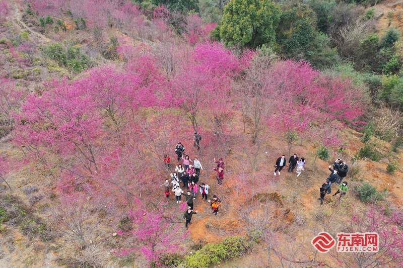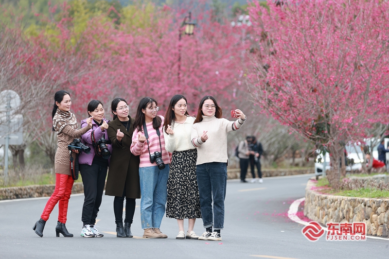艳丽的樱花吸引了许多摄影爱好者前来取景。陈英杰 摄 东南网2月15日讯(通讯员 陈英杰)初春的闽南大地,一派勃勃生机。日前,德化县“花开瓷都·‘樱’你浪漫”樱花节活动在雷峰镇潘祠村樱花园举办, 千亩近100万株福建山樱花优雅绽放、竞相争艳,宛若“群樱荟萃”,成为雷峰镇一道独特的风景线,吸引众多游客争相来打卡体验。