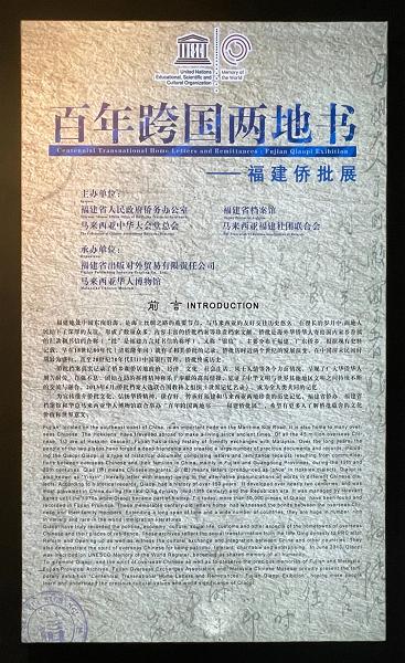 东南网5月23日讯 2023年正值侨批档案入选《世界记忆名录》十周年,为宣传推介侨批文化,弘扬华侨精神,传承好福建和马来西亚两地珍贵的历史记忆,让更多人了解侨批蕴含的文化价值和世界意义,由福建省人民政府侨务办公室、福建省档案馆、马来西亚中华大会堂总会和马来西亚福建社团联合会主办,福建省出版对外贸易有限责任公司、马来西亚华人博物馆承办的“百年跨国两地书”福建侨批展于2023年5月至9月在马来西亚华侨华人博物馆展出。