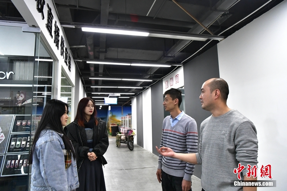 3月7日,台胞吴升桦(右一)带着公司同事在福建福州中亭数字产业中心和其它直播企业负责人交流。