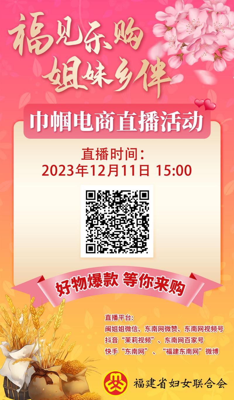 三明泰宁古色古香的人间烟火气令人着迷,集山水之浸润的美食美物同样不可辜负。12月11日,福建省巾帼电商直播活动第四场将走进三明泰宁。届时,泰宁各类代表性农特产品、巾帼女企代表好物、地道特色的“西部宝藏”等50余件商品将在直播间亮相。 绿水青山增颜值,金山银山增产值。暖心又暖胃的各类菌菇、养生又养颜的银耳羹、美味又解馋的豆制品零食等巾帼优选美食将优惠上架直播间。除了特色美食,泰宁著名旅游景区——大金湖、上清溪、寨下大峡谷将带来超值秒杀福利,优惠力度低至五折;西北羔羊肉、黄糯玉米、养生红枸杞等西部地区助农优品也将以超值价格精彩亮相。直播期间,泰宁县妇联主席将化身好物推荐官,在直播间推介三明本地特色巾帼好物;中级茶艺师、国家高级评茶员也将作客,为大家专业推荐品质甄选的泰宁岩茶。想要品尝三明地道美食、畅游泰宁名胜景区的你千万不能错过! 2023年“福见乐购 姐妹乡伴”巾帼电商直播活动于11月21日在福州连江启动。活动以“基地 直播 故事”的推广模式,举办15场直播,覆盖福建9个设区市和平潭综合实验区,围绕巾帼优品推广,引入当地乡村女主播,助力巾帼优品带货,持续帮助宁夏、新疆、西藏、甘肃地区销售巾帼好物,为乡村振兴赋能添翼。 三明泰宁直播活动由福建省妇女联合会主办,三明市妇女联合会、东南网承办,泰宁县妇女联合会、三明市女企业经营者协会、泰宁县寻找泰味食品有限公司协办。 福见乐购,姐妹乡伴。识别下方二维码,进入三明泰宁直播间把巾帼好物带回家吧!