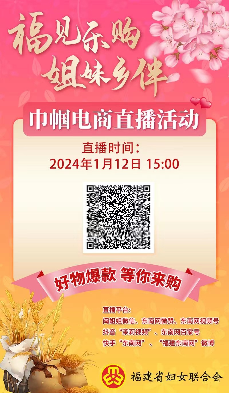 东南网1月11日讯(本网记者 陈佳颖)福建乐购,姐妹相伴。为培育乡村数字经济新业态,引导和鼓励广大女性参与并顺应数字化新经济业态,福建省妇联开展福建省巾帼电商直播活动,目前已开展14场电商直播活动,畅通我省“妇”字号企业及特色农产品销售渠道。1月12日下午3点,本年度最后一场福建巾帼电商直播活动将走进福州永泰,带您尽享“梅”好时光。 永泰是“中国李梅之乡”,县域内梅树广布,每年12月至次年2月,是永泰县的最佳赏梅期,数万亩梅花竞相开放。本场直播产品丰富,涵盖面广,不仅有民宿订购优惠套餐限时上架,更有多种味甜鲜美、甜酸适口的永泰李干、梅饼,天然山茶油制成的护肤品等,涵盖文旅、食品、日用等多领域,打通巾帼电商销售渠道。届时,“妇”字号企业代表、巾帼电商主播等在“移步换景”中,为广大网友介绍大樟溪旅游风光,为大家推荐适合朋友出行、家人出游等多种文旅民宿特惠套餐。除此以外,巾帼新农人手作商品,甘肃、新疆、宁夏的巾帼好物上线直播间,带来超值福利好品,助力地方“妇”字号产品销售与传播。 近年来,永泰县全域旅游持续火热,民宿业发展迅速。本场直播活动依托位于樟城镇的福州农禾抖音电商直播基地进行。基地以新型电商为核心,用短视频和直播的形式带动本土农副产品线上销售,推动“永泰家乡好物”品牌宣传,做好永泰本土乡村达人孵化以及本地文旅相关产业推广等工作。同时,基地通过电商培训,提供女性电商创业机会,有效带动了当地女性实现“家门口”就业。目前已联动本地上下游产业链,助力本县居民实现再就业数百人。 福建省巾帼电商直播活动永泰场由福建省妇女联合会主办,福州市妇女联合会、东南网承办,永泰县妇女联合会、永泰县融媒体中心、福州市女企业家联谊会、福州农禾电商直播基地协办,将于1月12日15:00通过抖音、微信视频号、微赞、快手等多平台线上直播,向广大网友推介永泰县优质农产品,促进巾帼企业在电商平台持续发展。 识别下方二维码,快进入直播间把巾帼好物带回家吧!