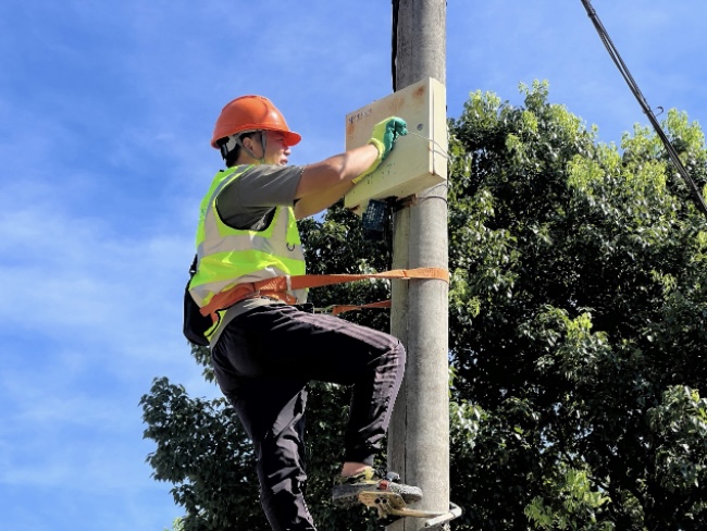 巡检分纤箱排查隐患 中国电信福州分公司重点落实各项防抗台风与暴雨准备工作,做好机房防进水、通信线路加固,备齐油机、卫星电话、抽水机、油料、缆线、沙包等防汛应急物资,以确保灾前、灾中、灾后三个阶段的抢修保障工作能够及时、高效到位。还主动沟通配合地方政府做好抗灾准备,调度100Kw、400Kw应急通信电源车各一辆,分别派至福州公司枢纽中心、仓科信息楼作为应急调度储备,随时根据灾情调动,确保一线通信保障服务不中断。