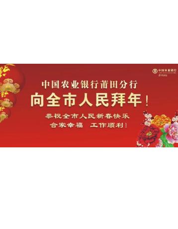 中国农业银行莆田分行:中国农业银行莆田分行向全市人民拜年!恭祝全市人民新春快乐!合家幸福!工作顺利![详细]