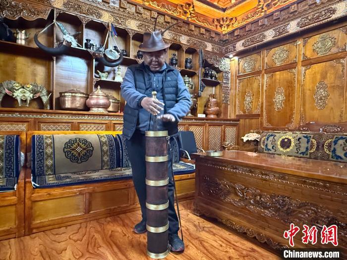 图为米玛顿珠在展示传统的酥油桶。贡桑旺姆 摄 “小时候上学时,阿妈每天早早就起来打茶。”60岁的米玛顿珠回忆道,“那时候条件艰苦,就算没有足够的酥油,阿妈也会在清茶上放上一层薄薄的酥油。那时的我,怎么也想不到今天能用上这么便利的打茶壶”。 如今,这个陪伴了全家近四代人的老木桶,被郑重地摆在客厅的陈列柜上。旁边摆放着同样年代久远的老式秤和糌粑桶,三个老物件静静诉说着往昔的艰辛。“这些都是我父辈用的,我也喝过这个木桶打出来的茶。”米玛顿珠说。 在物资匮乏的年代,一壶酥油茶是难得的奢侈。作为家里七个孩子中的老二,米玛顿珠最难忘的是上学时的“特制茶”——上学前母亲总会仔细地为他准备好够吃21天的糌粑,装进布袋里。“有条件的时候,还可以带上一小瓶菜籽油,到了学校,清茶里滴几滴油,兑点糌粑,使劲晃啊晃,假装就是酥油茶了。”他说着笑了起来,眼角的皱纹里却藏着往日的酸楚。 随着电力基础设施的完善,老百姓的生活品质不断提升,传统老木桶开始退场,电动酥油桶登场。米玛顿珠家也迎来了第一台电动酥油桶。 “村里通电后,我去日喀则市区买了‘牦牛牌’电动酥油桶。”米玛顿珠回忆,“按个键,茶就打好了,很方便,打出来的酥油茶也更好喝。”电动酥油桶的出现,不仅节省了人力,还提升了酥油茶的品质,让这一传统饮品更便捷地融入生活。 2015年,在西藏自治区成立50周年之际,米玛顿珠家收到一台特别的电动酥油茶桶。壶身写着“中央代表团赠”的汉藏双语文字,记录着这份礼物的特殊意义。作为与西藏自治区同龄的米玛顿珠一直好好珍藏着它。 今年,通过“以旧换新”惠民政策,米玛顿珠又添置了雪莲花牌高原全自动酥油茶壶。“现在买这个有政府补贴,用起来特别方便,还能保温。”米玛顿珠介绍道。 从无到有,从有到优——米玛顿珠家的四代酥油桶,正是西藏发展的生动缩影。如今,他家的茶香从早到晚不曾间断:清晨的酥油茶、午后的甜茶、傍晚的清茶。米玛顿珠的退休生活更是有滋有味,送完孙子上学就去找老友们跳锅庄,跳累了就找个阳光正好的茶馆,和三五好友聊聊家常。