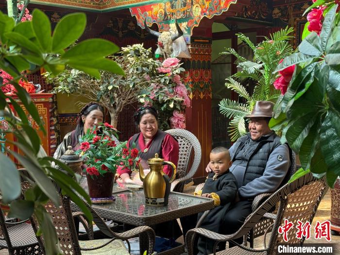 图为老人米玛顿珠(右一)和家人一起。贡桑旺姆 摄 达娃将冒着热气的酥油茶倒入米玛顿珠的藏式包银木碗中,捧起木碗,温热的触感让米玛顿珠不禁想起家里珍藏的四代打茶工具: ——那件被岁月磨出包浆的老木桶 ——那台漆面斑驳的“牦牛牌”电动酥油桶 ——那台刻着“中央代表团赠”的铜色打茶桶 ——还有雪莲花牌高原全自动酥油茶壶 在米玛顿珠家里的四代酥油桶,不仅是制作酥油茶的工具,更是一部浓缩西藏民主改革66年来群众生活巨变的“立体史书”。