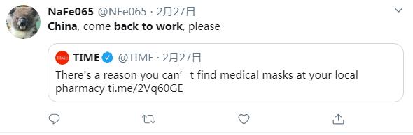 推特用户NaFe065说:中国赶紧复工复产吧,拜托了。