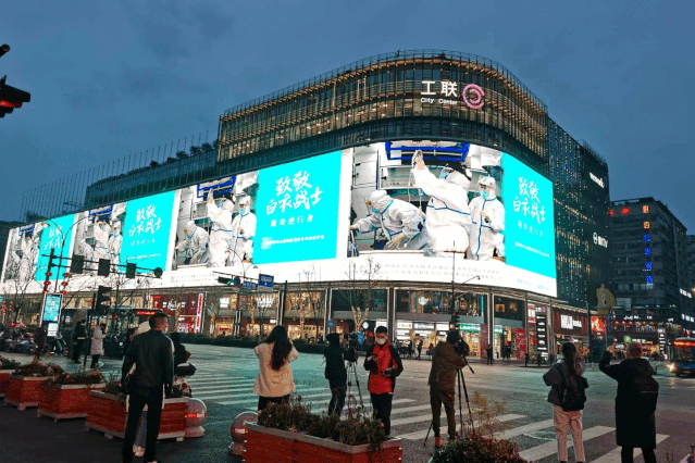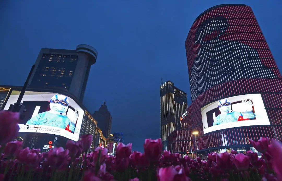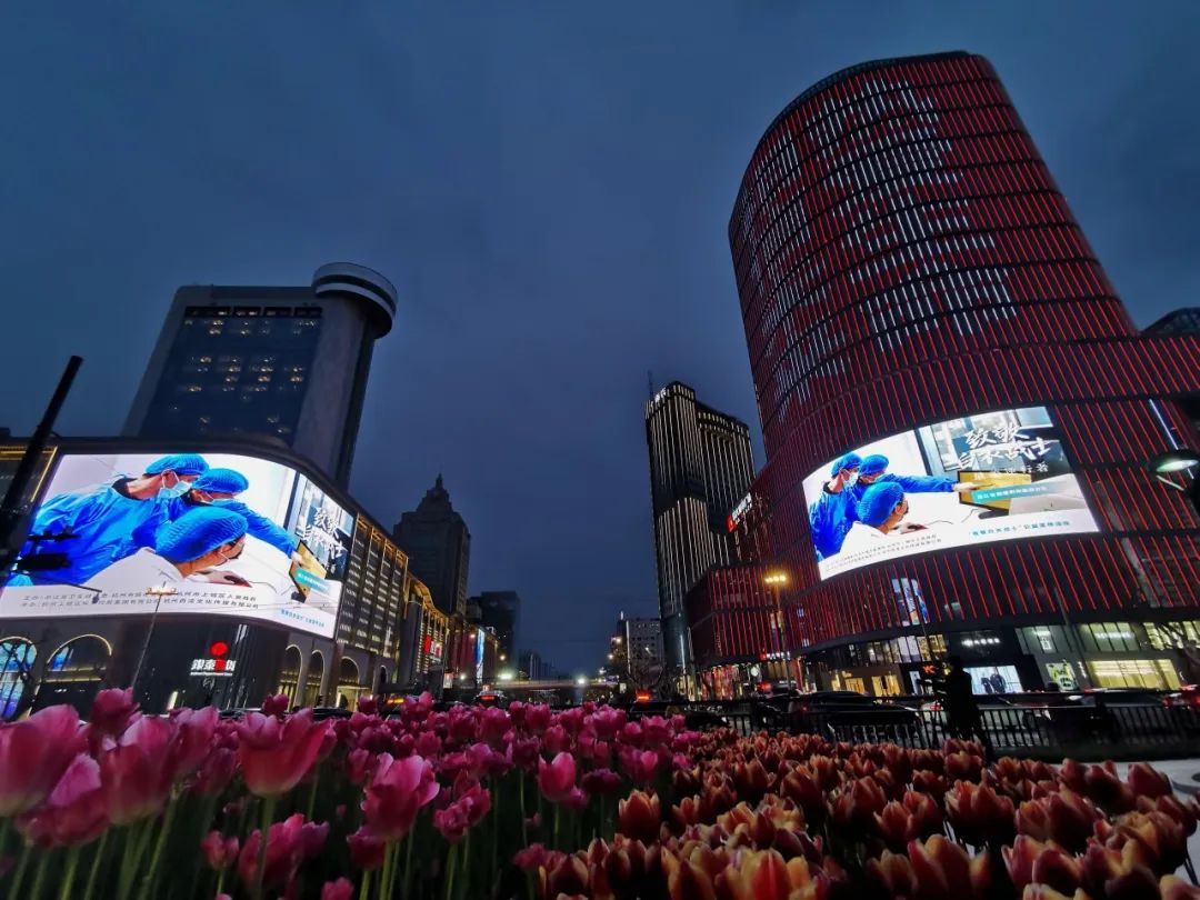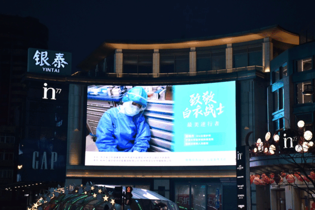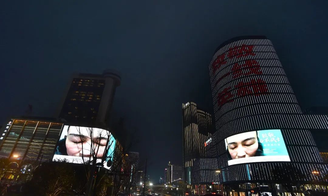 2020-03-03 16:14:03 来源:杭+新闻、健康浙江 责任编辑:李雅兰 作者:3月2日晚,杭州全市各城区的101块户外LED大屏 和钱江两岸的恢弘巨幕同时亮屏, 滚动播放100幅浙江奋战在抗疫一线的 白衣战士的面容身影, 以同一个画面同一种声音, 向最美逆行者——白衣战士致敬! 湖滨 晚上6点多,延安路上的车流渐渐多了些。 下了班的和散步的行人们, 戴着口罩,手缩进袖子里,行色匆匆。