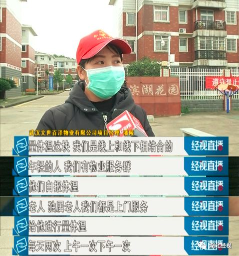 物业从大年三十开始就一直没有休息,一直坚守在岗位上,下一步会加强对业主们的生活保障,让大家不要外出,不要掉以轻心,加强疫情防控的宣传,让滨湖花园成为大家的真正的安全岛。 点击图片看视频 来源:湖北经视《经视直播》 |记者:李炎生 蔡亭 | 编辑:汤巧霞 | 主编:祁培 |