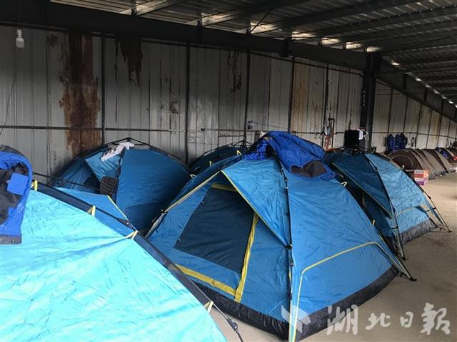 这是一场超长接力跑。超负荷工作不能让一个人长期干,江苏、河北、河南等9省(市)的蓝天救援队接踵而至,轮流换班。截至3月1日,已累计有450名队员援助武汉,中转物资约2600万件,日均分拨物资72万余件,目前在岗队员为170人。 半个月洗上一次热水澡,很开心 睡上4.0版本的单人床,很满足 采访3个多小时后,湖北队队员皮建军为记者倒上了一杯热水,他笑着说:“这可不是一杯普通的热水。” 原来,这是一座刚建成的仓库,队员们进场时,仅有一根直达仓库的电线,电压仅能满足照明。大伙忙了一夜,准备烧一壶开水,结果刚插上电源,仓库陷入一片漆黑。无奈,队员们只能连续喝了一周的矿泉水。后来,在地方政府和电力部门的帮助下,换了变压器,拉上新电线,队员们才喝上开水。 在基地,记者还发现各种“卧室”:停在路边的一辆辆皮卡车上,有人裹着被子在睡觉;在仓库二楼的一个角落,摆放着10多顶帐篷,几名队员“横七竖八”地躺着呼呼大睡;在道路两侧,还有23间编了号的集装箱板房,每间板房不足18平方米,却拥挤地摆放着6至8张单人床。 “这是我们一个多月来睡觉的4个版本。”皮建军讲解了床的由来。