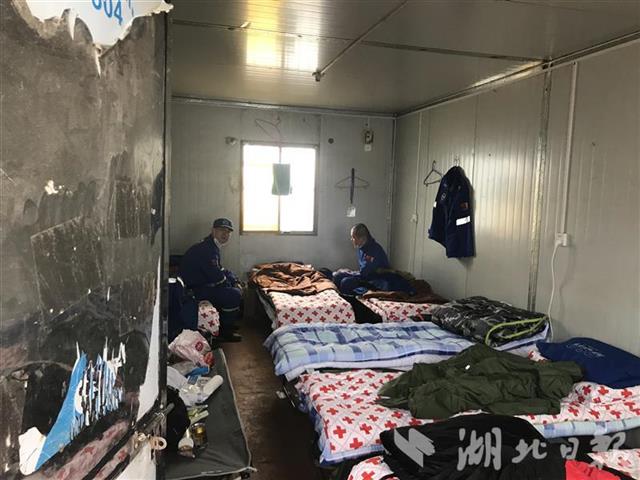 起初,队员们没有床,困了就直接坐在椅子上“点”一夜头,有的五六个人挤在一辆皮卡车上,裹着两床被子蜷着身子将就一晚;几天后,有了一些简易帐篷,3个大男人可以躺下来一起睡;再后来,又陆续来了一些宽大、挡风的高级帐篷,队员们每人一顶,终于能睡上一个安稳觉;2月下旬起,陆续调来了23个集装箱板房,150多名队员有了自己的单人床。 “4.0版本的床睡得非常舒服,条件太好啦。”坚守了1个多月的江苏队队员张宇朴经历了每个版本,睡在单人床上,他非常满足。 15时,3名女队员拿着衣服和洗漱用品,登上了停在板房旁的一辆绿灰色卡车,上面写着“女士专用,男士止步”字样。 “这是省应急管理厅3月1日调来的一辆洗澡车,专为女队员服务。”队员们说,这辆车24小时提供热水,可一次性满足8人同时洗澡,3月2日正式投入使用,10多名女战友个个高兴坏了。 离洗澡车20米远,是一个没有门锁的简易澡堂,由2个集装箱板房拼凑而成,5名男队员一边哼着歌一边洗着热水澡。 皮建军说,刚来的时候,没有电,没有设备,无法提供热水,所有人半个月没有洗澡。后来,有人运来了2台燃气热水器和4台电热水器,可一次供6个人使用,大伙才开始轮流洗澡。但到女队员时,还要派一个人站在门口“放哨”,非常不便。